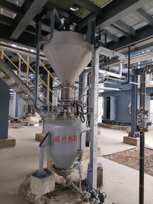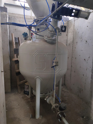 我公司生產(chǎn)的SYB 系列上引式粉體輸送泵, 倉泵附件在材質(zhì)和設(shè)計方面通過長期優(yōu)化改進,進料閥、排氣閥使用壽命20萬次以上,出料閥、出料管等磨損面均內(nèi)襯耐磨陶瓷,有效提高了設(shè)備使用壽命。底部流化通過技術(shù)改進,采用新型多層寶塔式鋼制流化盤,經(jīng)久耐用,流化效果良好,輸送平穩(wěn)。(是老式過濾帆布流化盤使用壽命的30倍) 該泵為上出料方式,有利于輸送管線的布設(shè)。